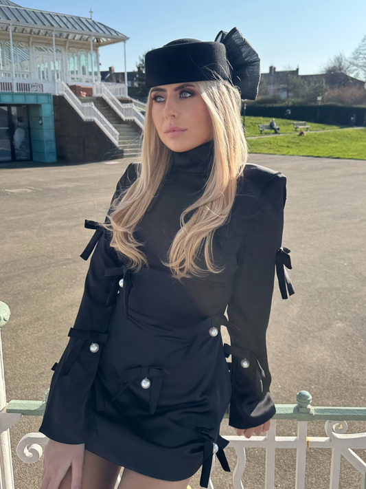 A collaboration between Katie Mangan and Francesca Couture, bringing together beautifully tailored outfits and unique headwear.